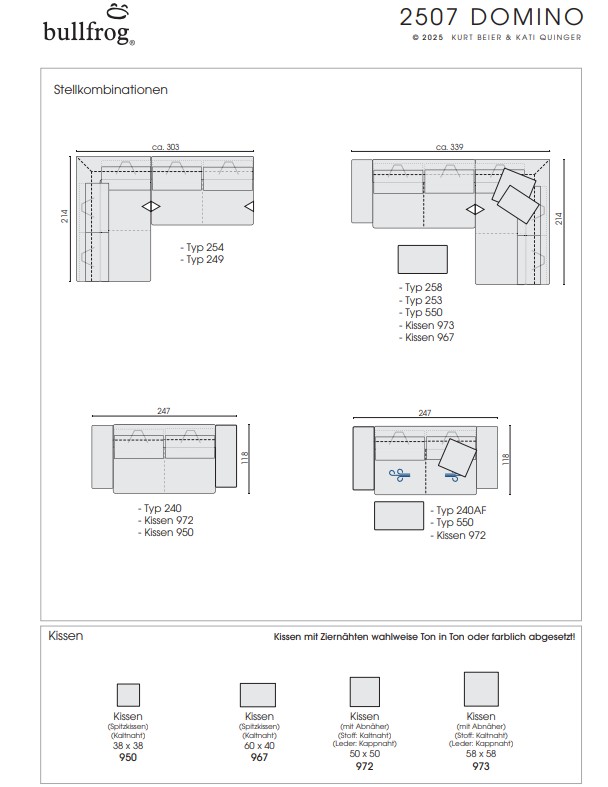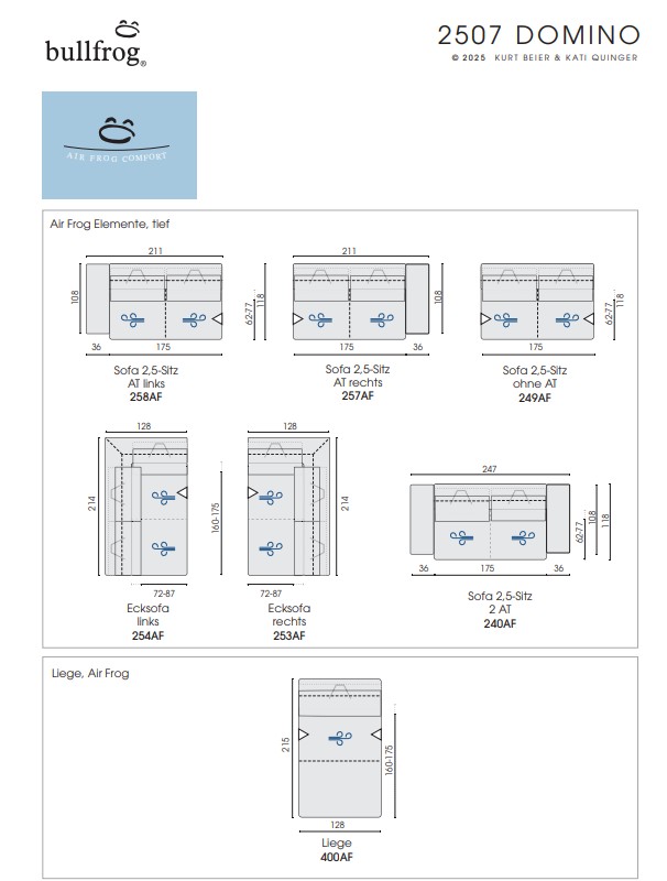 | Bezug | Wahlweise in Leder oder Stoff aus der Bullfrog-Kollektion |