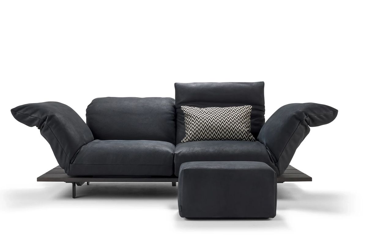 Das Sofa Naos von Bullfrog steckt voller Überraschungen. Verschiedene Bestandteile des Naos lassen sich individuell einstellen. So lassen sich sowohl Rücken- wie auch Armlehne den eigenen Bedürfnissen entsprechend einklappen. Kombiniert mit der Möglichkeit den Sitz um 90° zu drehen, lässt sich die Armlehne zu einer bequemen Liege umwandeln. Der untere Rücken ist wahlweise mit motorischer Funktion erhältlich.