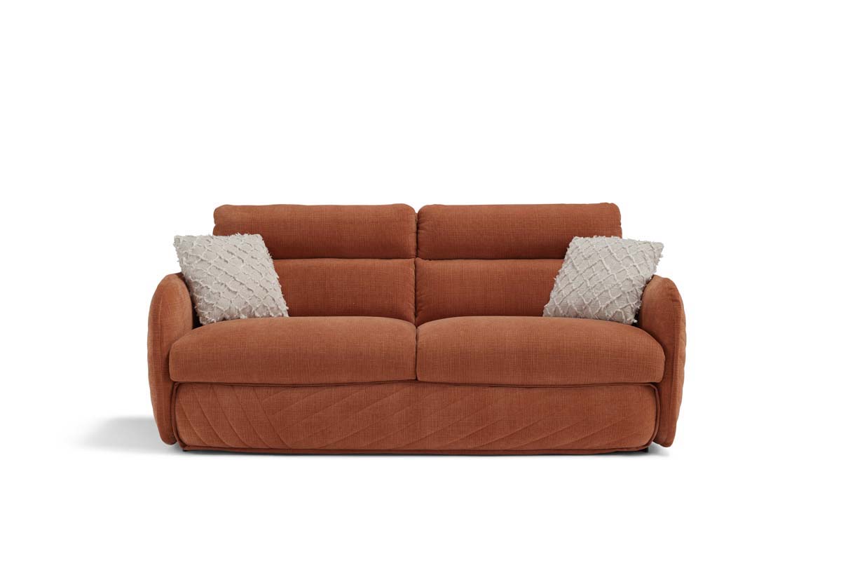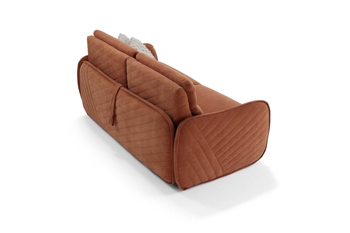 Das Schlafsofa zeichnet sich durch seine schlichte Eleganz aus, die durch schwarze Metallfüße und ein klassisches, zeitloses Design ergänzt wird. Für noch mehr Individualität können Sie das Sofa mit einer optionalen Steppung ausstatten, die das Modell zu einem echten Blickfang macht.