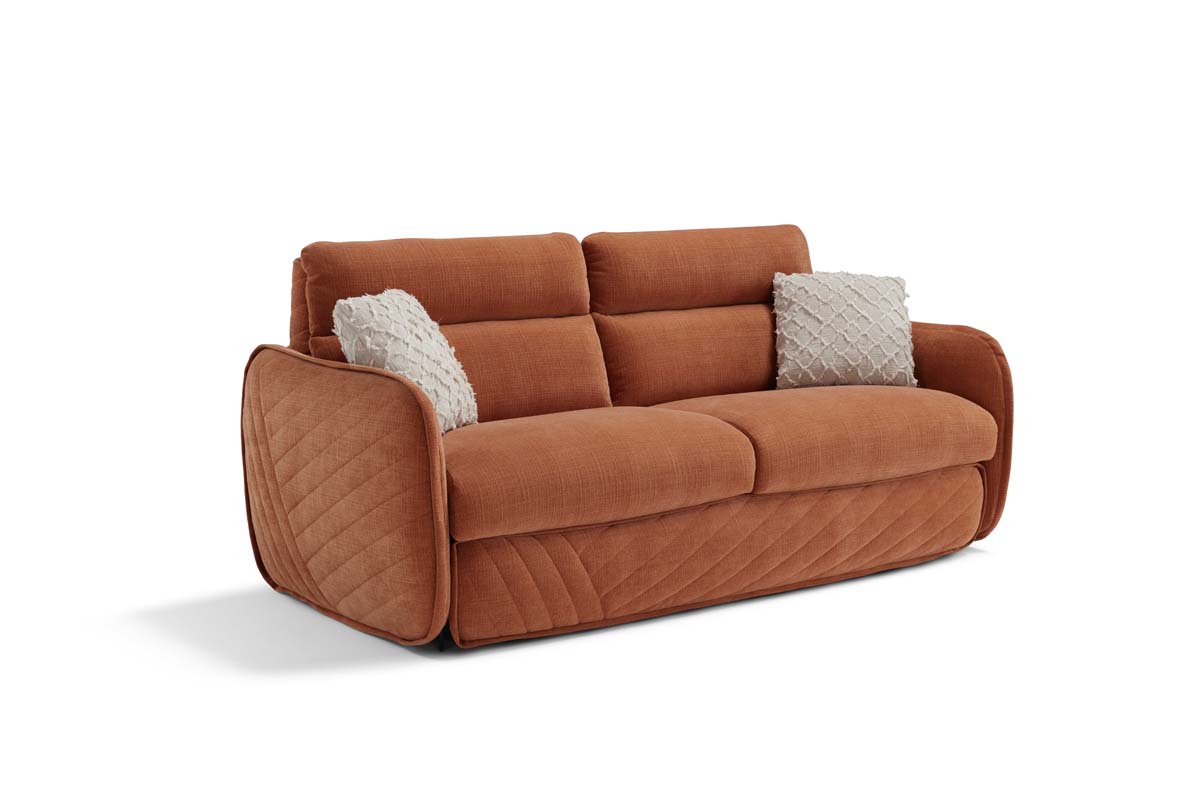 Das Schlafsofa Moon Plus von Dienne vereint stilvolles Design und außergewöhnliche Funktionalität in einem einzigen Möbelstück. Perfekt für all jene, die sich nach einem Sofa sehnen, das nicht nur tagsüber als elegantes Möbelstück dient, sondern auch nachts zum komfortablen Bett wird. Lassen Sie sich von seiner Vielseitigkeit und dem luxuriösen Komfort begeistern. Mit der Standardmatratze (Höhe 17 cm) bietet das Schlafsofa einen unvergleichlichen Schlafkomfort. Der elektrogeschweißte Standardbettrost ermöglicht eine mühelose Umwandlung des Sofas in ein Bett, das Ihnen den perfekten Schlafkomfort bietet.