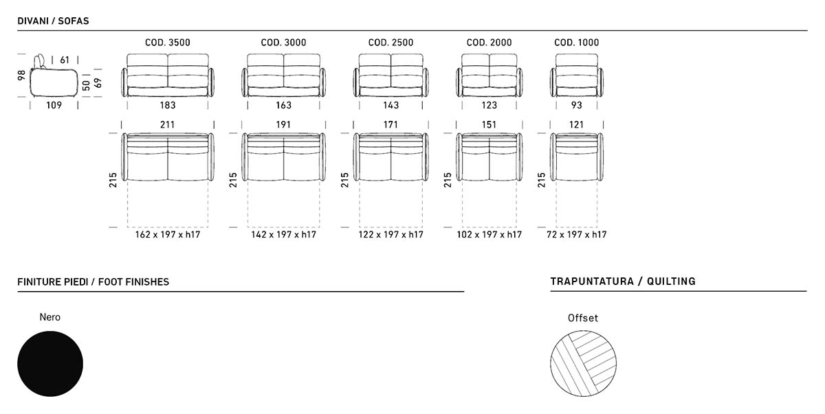 Zwei Kissen Modell D24 in der gleichen Farbe und Kategorie wie das Sofa sind im Lieferumfang enthalten und sorgen für zusätzlichen Komfort, egal ob im Sitzen oder Liegen. Die Kissen sind nicht gesteppt, was das Sofa mit Steppoption besonders gut ergänzt.