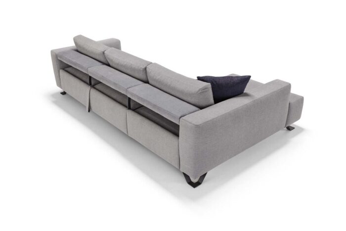 Das Gestell aus Sperrholz und Massivholz sorgt für Stabilität und Langlebigkeit. Die Standardmatratze – Höhe 13 cm- bietet eine angenehme, stützende Oberfläche, und die Sitzfläche wird durch das Memory-Material im oberen Bereich perfekt an Ihren Körper angepasst. Die Rückenlehne aus Gänsedaunen bietet die nötige Weichheit für ein luxuriöses Sitzgefühl.