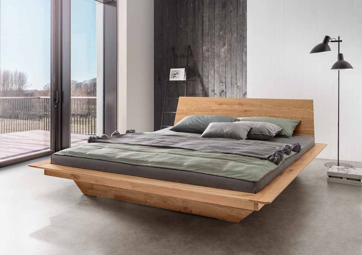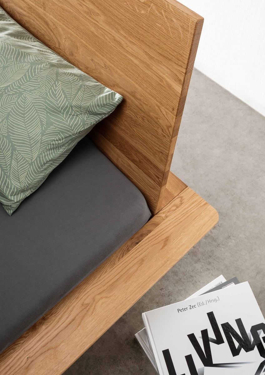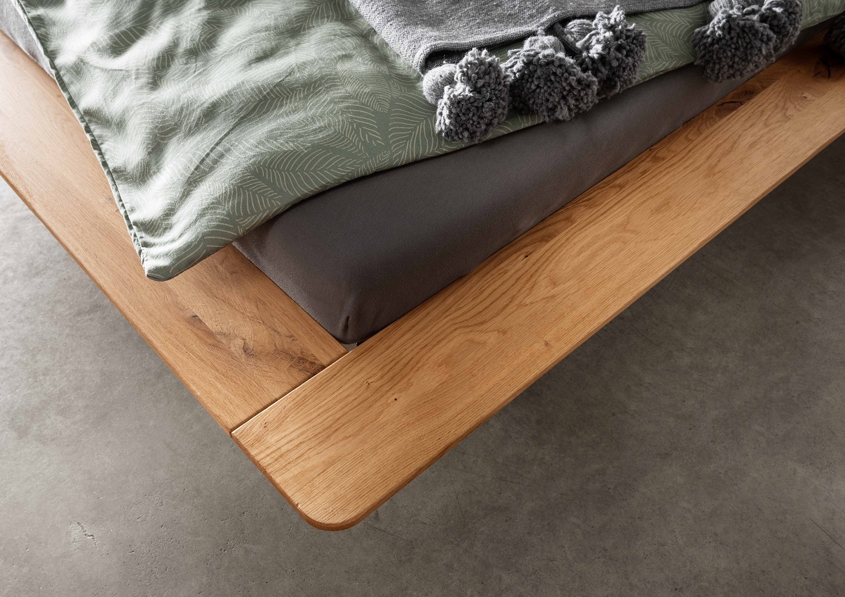 Diese Holzkufen sind zurückgesetzt, so dass sie auf den ersten Blick nicht sichtbar sind und eine elegante „Schwebeoptik“ entsteht, die das Bett zu einem echten Blickfang in Ihrem Schlafzimmer macht. Memphis ist aus Wildeiche gefertigt – einem sehr widerstandsfähigen und langlebigen Massivholz, das aus nachhaltig bewirtschafteten europäischen Wäldern stammt. Das Bett ist nicht für Rollroste geeignet, sondern nur für Lattenroste. Auf Wunsch kann das Bett auch mit einem Kopfteil ausgestattet werden.