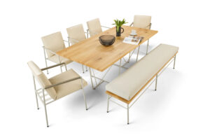 Hergestellt aus erstklassigem Massivholz, bietet dieser Tisch eine zeitlose Schönheit und Robustheit, die ihn zu einem zentralen Möbelstück in Ihrem Zuhause macht.