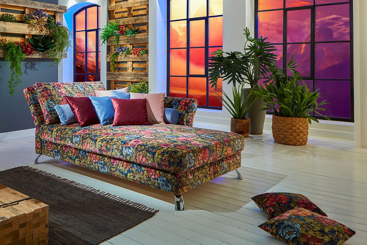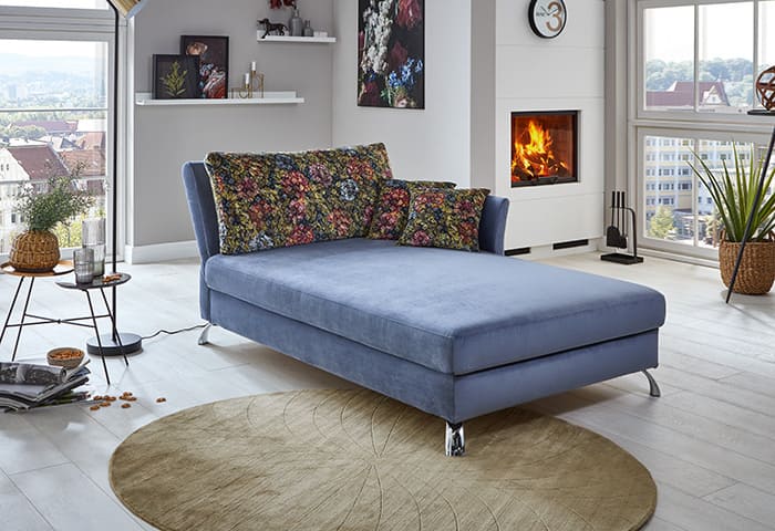Die vielseitige Récamiere ist in den Breiten 90, 110 und 140 cm verfügbar und bietet – je nach Ausführung – ausreichend Platz für zwei Personen. Unterschiedliche Fußvarianten aus verchromtem Metall oder Holz setzen zusätzliche optische Akzente.