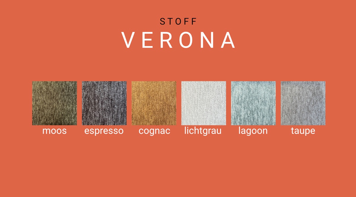 | Stoff Verona: | mit samtig weicher Oberfläche in 6 Farben |