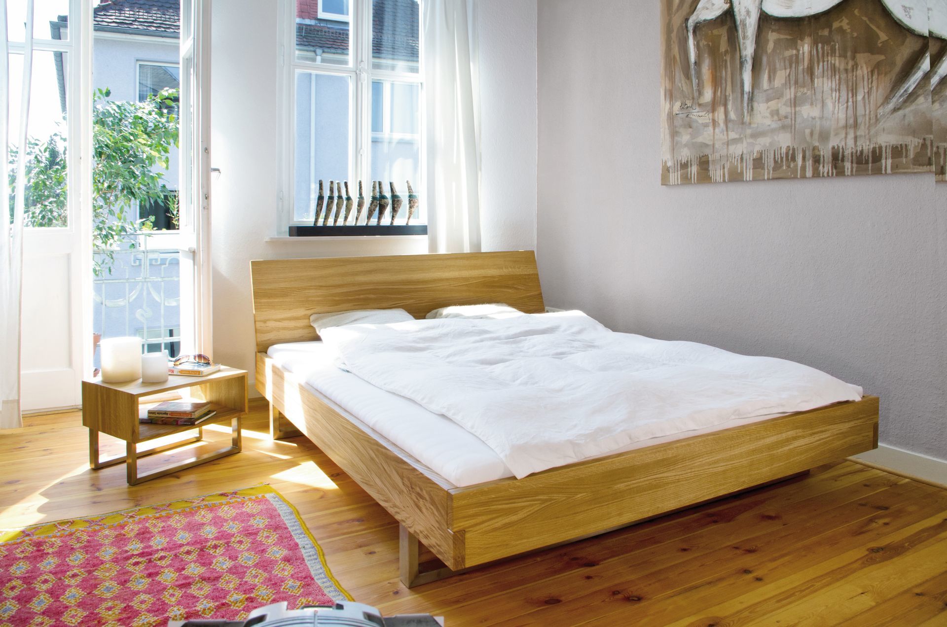 Das Bett wird aus erlesenen Massivhölzern gefertigt, die schonend behandelt werden, um ihre natürliche Schönheit zu bewahren und zusätzlich zu schützen. Die Einlegetiefe mit Auflageleisten beträgt 15,5 cm. Für eine bessere Anpassung können wir auf Wunsch auch eine Lattenrostabsenkung auf 17,5 cm durchführen.