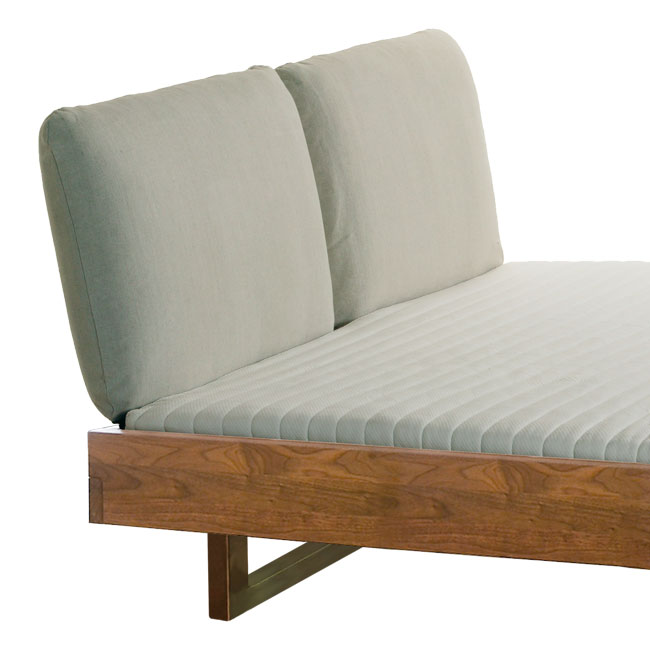 Das Sindou XL ist die große Schwester des Sindou mit 4 cm höherem Rahmen. Das leicht schwebende Bettgestell Sindou spielt durch seine Eckverbindung mit den Gegensätzen von eckig und rund.