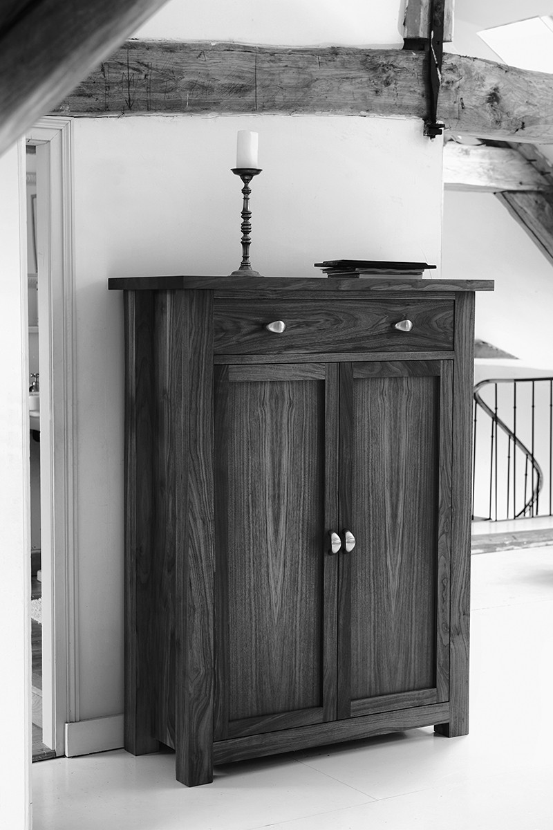 Die Kommode Keduna K-K28 von Sira begeistert mit ihrem robusten Design, das an eine klassische Werkbank erinnert. Mit ihren klaren, viereckigen Beinen vermittelt sie einen stabilen und dennoch eleganten Eindruck. Die Schubladen sind mit verdeckten Schwalbenschwanzverbindungen versehen, die sowohl funktional als auch ästhetisch ansprechend sind – sie garantieren Zugfestigkeit und erlauben dem Holz, auf natürliche Weise zu arbeiten. Jede Schublade ist zudem mit einem Muschelgriff ausgestattet, der der Kommode einen zusätzlichen Hauch von Charme verleiht.
