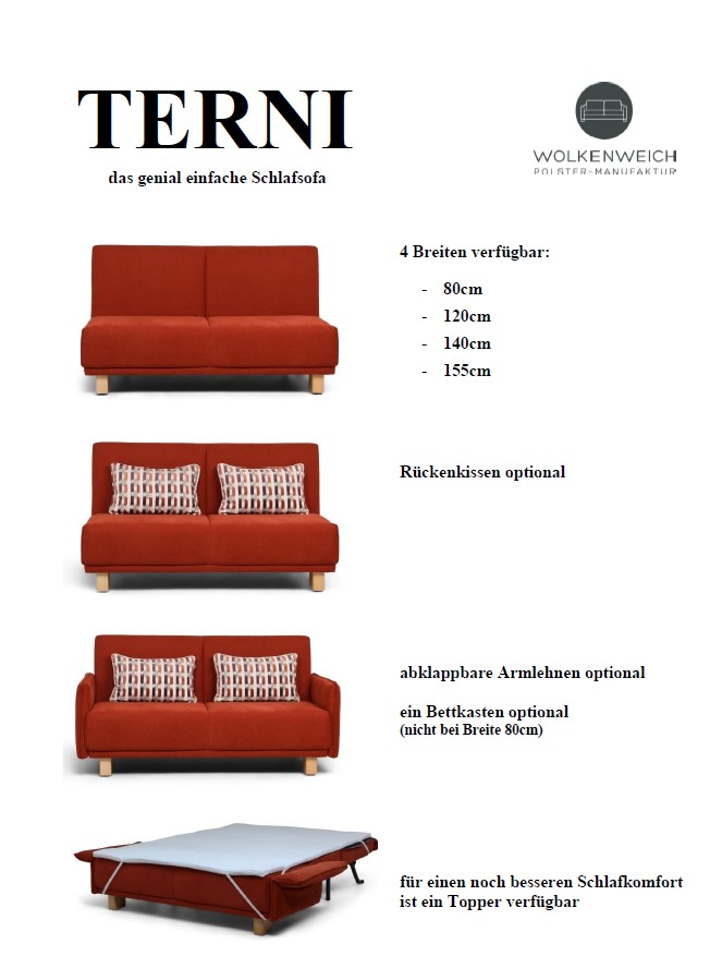 Mit dem Schlafsofa Terni bietet Wolkenweich ein durchdachtes Möbelstück, das Flexibilität, Komfort und Stil optimal vereint – perfekt für alle, die sowohl bequem sitzen als auch erholsam schlafen möchten.