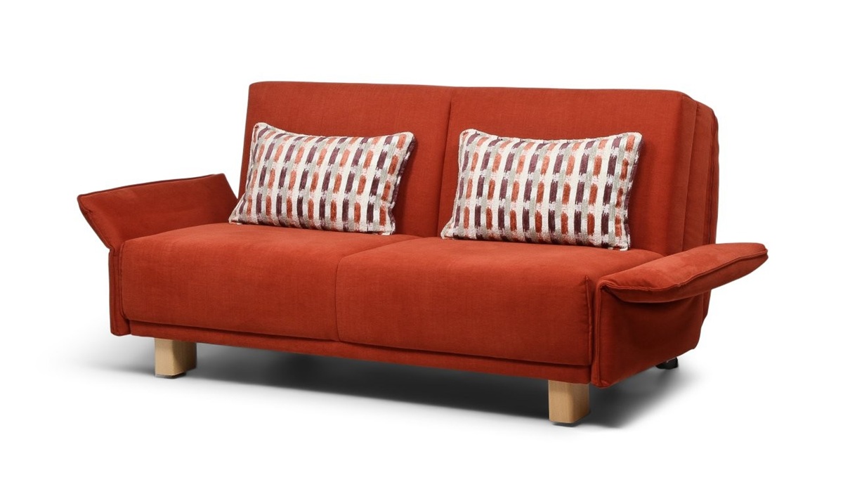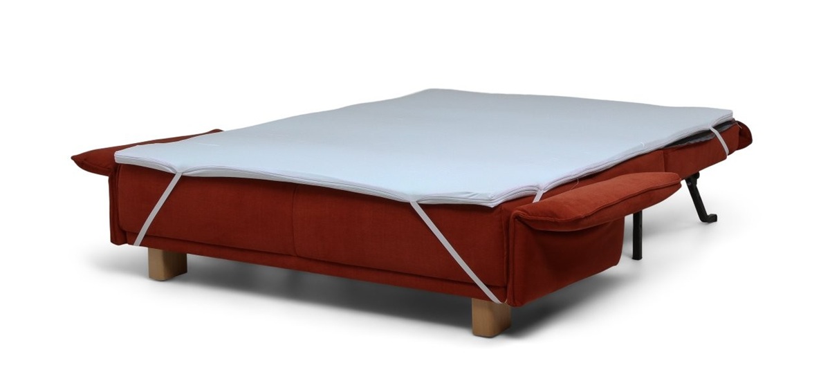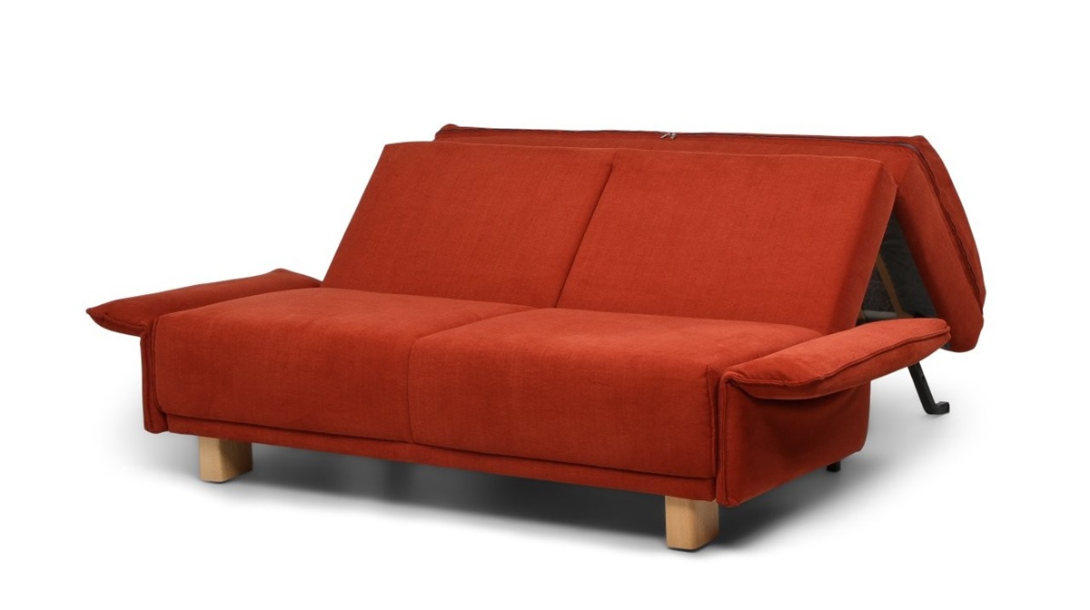 Optional lässt sich das Schlafsofa mit Rückenkissen ausstatten, die zusätzlichen Komfort beim Sitzen bieten. Auch abklappbare Armlehnen sind auf Wunsch verfügbar und machen das Sofa noch vielseitiger. Der Bettkasten schafft praktischen Stauraum für Decken, Kissen oder Bettwäsche – ausgenommen bei der Liegefläche mit 80 cm Breite. Für ein noch angenehmeres Schlaferlebnis kann ein Topper hinzugefügt werden, der die Liegefläche weich und ergonomisch stützt.