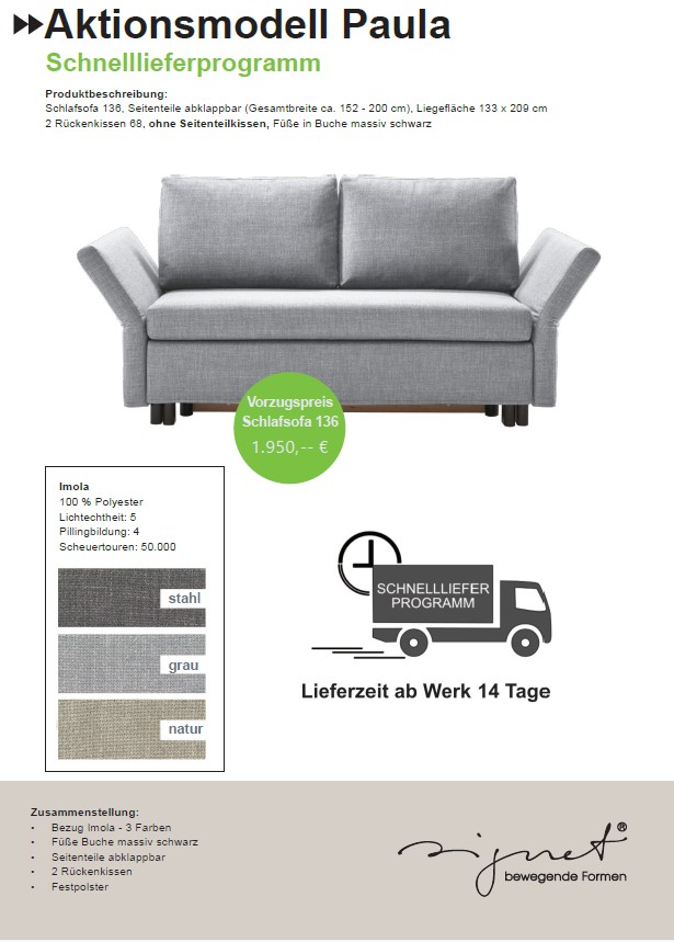 Das Aktionsmodell Paula in einer von 3 Farben des Stoffes Imola blitzschnell bei Ihnen.