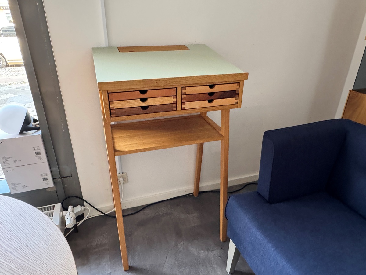 Sie erhalten hier das Stehpult 2, in Eiche und Lino-pistachio.