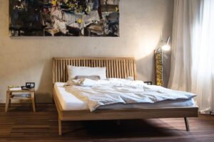 Der Mittelpunkt aller Schlafzimmer ist das Bett. Vom Kinderbett über Jugend- und Einzelbett bis zum Ehebett, kein Möbelstück liegt uns so am Herzen wie unser Bett. Und vor allem mit keinem anderen Möbelstück verbringen wir mehr Zeit, denn der Mensch schläft ein Drittel seines Lebens, vorzugsweise in seinem eigenen Bett. Auch bei anderen Aktivitäten wie Lesen, Fernsehen, Frühstücken oder wenn wir krank sind spielt unser Bett eine bedeutsame Rolle. Damit das so bleibt, ist der Kauf des richtigen Bettes entscheidend. Der Markt verspricht hierzu unzählige Bettmodelle und Schlafsysteme, die sich an den individuellsten Bedürfnissen und Wünschen anpassen. Doch nicht nur funktionell, sondern auch designtechnisch sollte das Bett zu Ihnen passen. Damit Sie das richtige Bett für sich entdecken, bieten wir von Wohnwerk Berlin Ihnen eine große Auswahl an hochwertigen Bettgestellen an. Vor allem erhalten Sie bei uns die größte Auswahl an qualitativ erstklassigen Massivholzbetten. Schonender Umgang mit der Natur, Verwendung von hochwertigen und nachwachsenden Rohstoffen sowie nachhaltige Produktion lassen das Herz jeden Holzliebhabers höher schlagen. Welches Bett zu Ihnen passt und auf welche Kriterien Sie besonders achten müssen, erfahren Sie von unseren qualifizierten Beratern vor Ort. Besuchen Sie uns vor Ort, auf eine kompetente Beratung bei solch einer wichtigen Entscheidung…